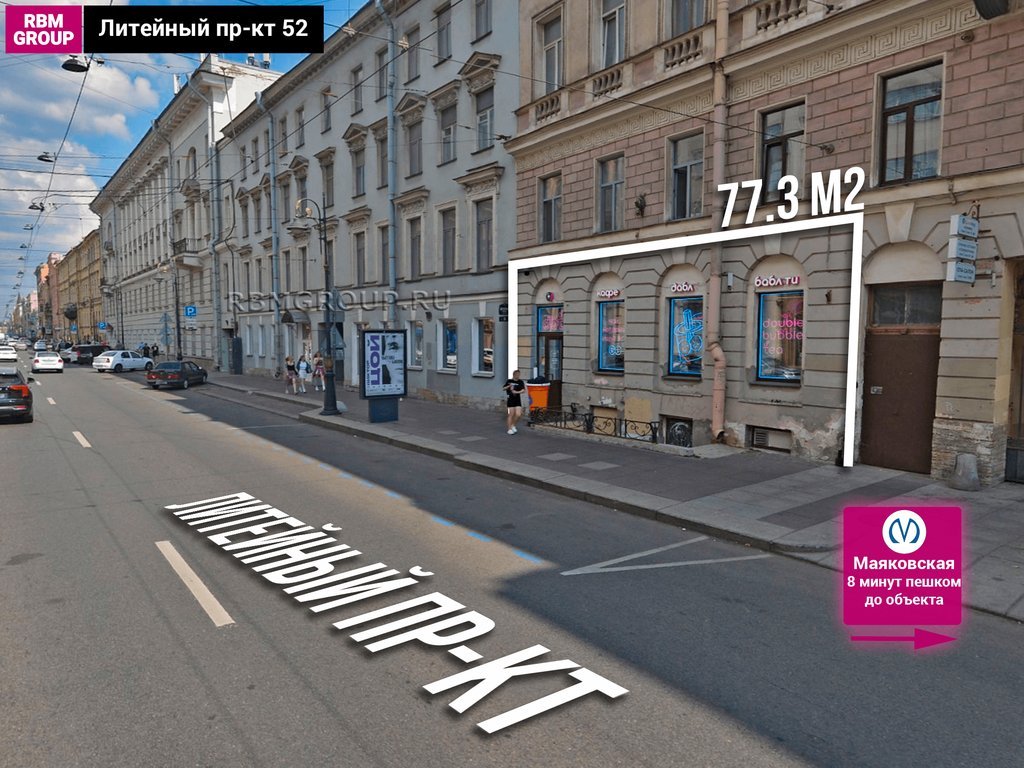 Угол Литейного и Жуковского, трафик, 77 м2№ 19956